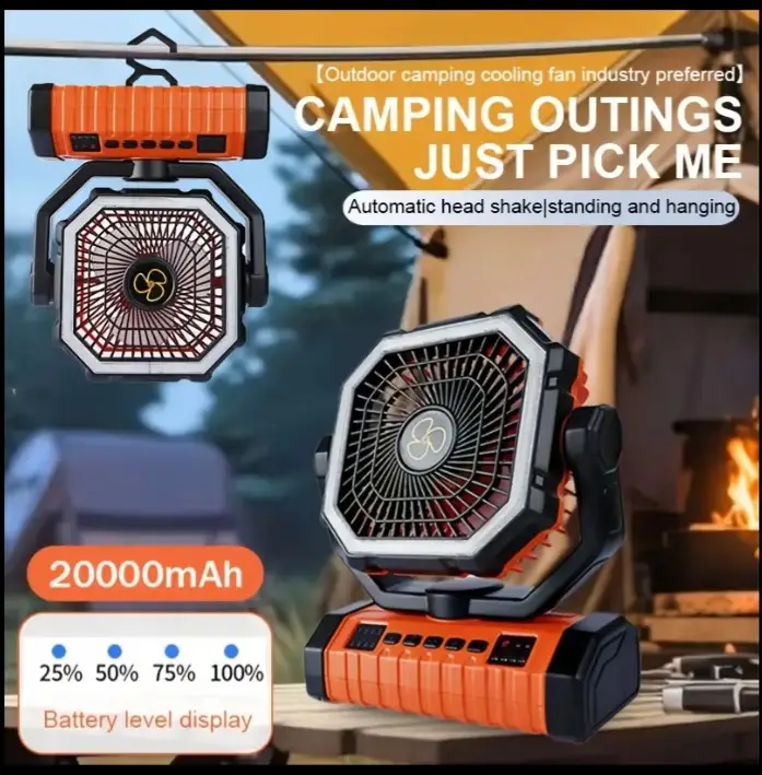 20000mAh Ventilador Portátil para Camping con Luz, Recargable USB, Pequeño Ventilador para Tienda de Campaña, Herramienta de Enfriamiento, Control Remoto, Luz de Emergencia, Larga Duración, Fuente de Energía Esencial para Camping, Pesca y Senderismo